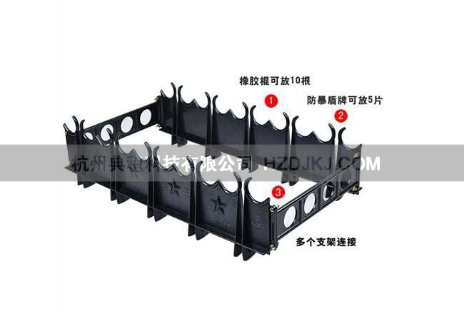 防暴盾牌支架一次注塑成型,具有強(qiáng)度高、重量輕的特點(diǎn),組裝簡(jiǎn)單,拆卸容易,不易破碎,便于攜帶,方便野外訓(xùn)練存放盾牌,訓(xùn)練完后隨意放置,不易磨損盾牌表面,且無(wú)論放置多少數(shù)量的盾牌,均可任意加長(zhǎng)或減短進(jìn)行組合.